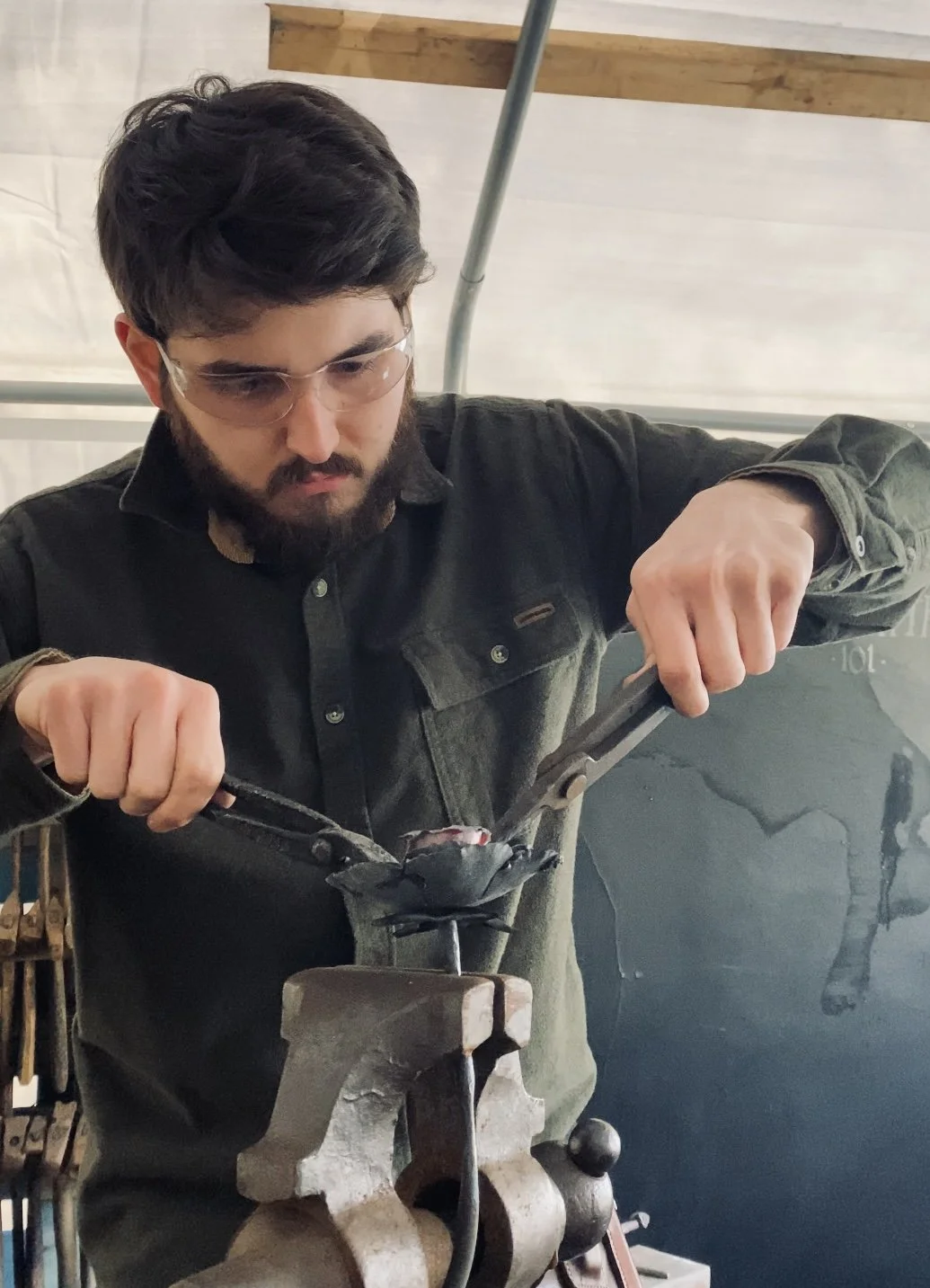 Nick adjusting the petals on an iron rose